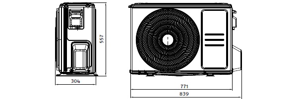 L’unità esterna può essere montata a parete, lasciando libero il pavimento di balconi e terrazzi: le sue dimensioni sono infatti comparabili con quelle dell’unità esterna di un condizionatore, però si tratta di un sistema ibrido splittato idronico!